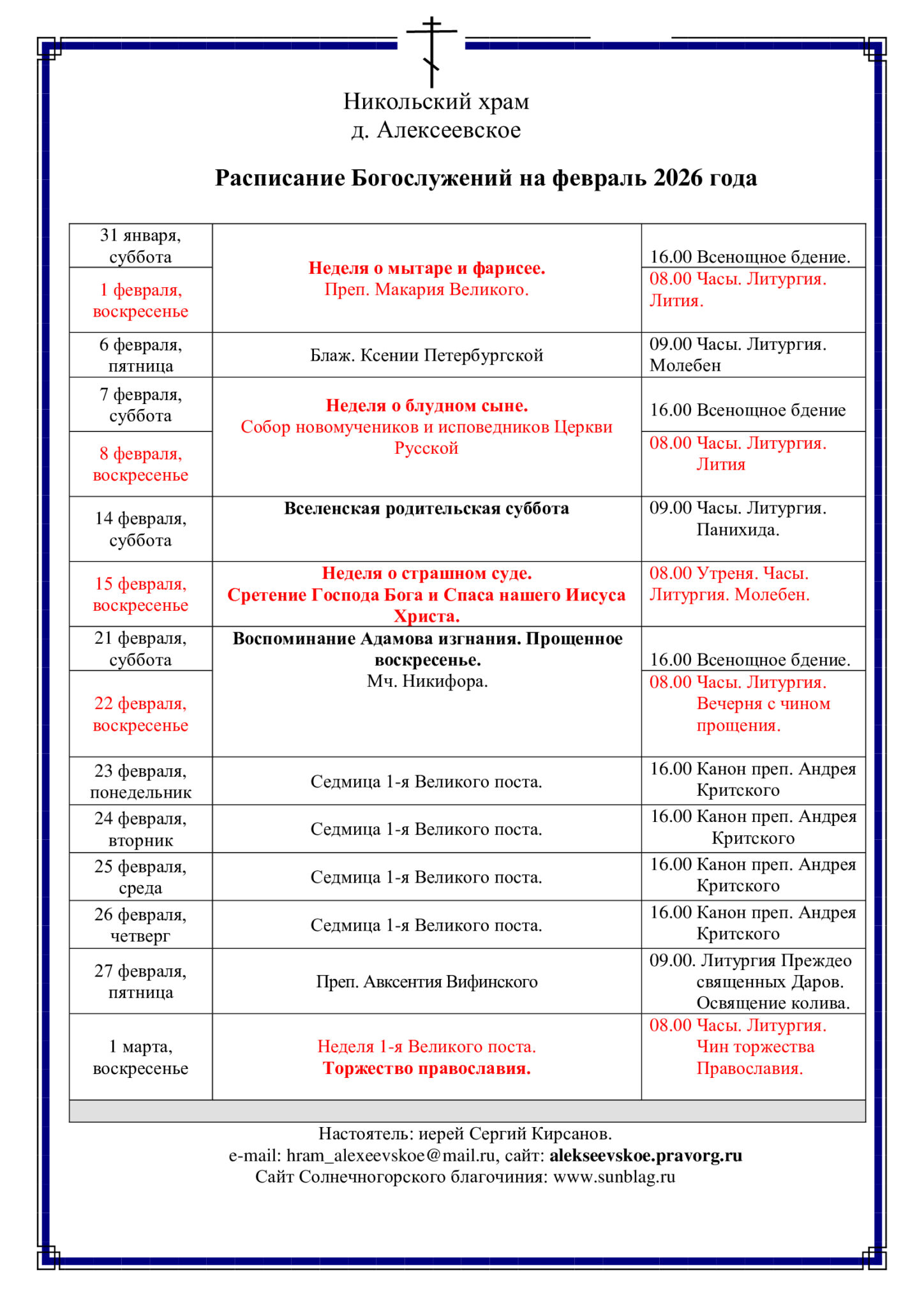 Приходской сайт храма в д. Алексеевское